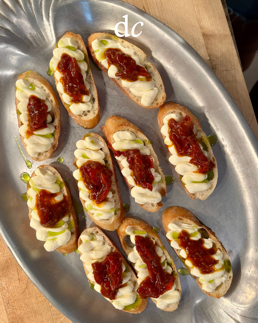 Bread of choice (baguette or sourdough), sliced and toasted with olive oil